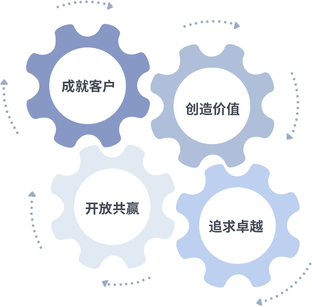 成就客户是一切决策的出发点,,,,创造价值是衡量所有工作的标准,,,追求卓越是Z6·尊龙时凯做事做人的态度,,,,开放共赢是Z6·尊龙时凯的格局也是最终的结果。。。。价值观的齿轮环环相扣,,推动着组织里的每个人不断向前。。